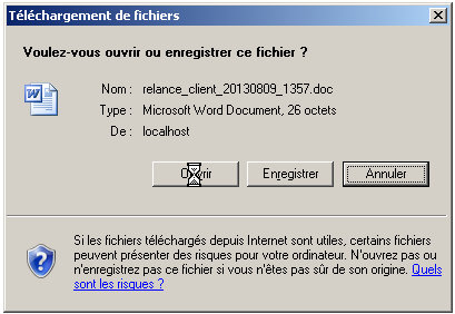 vous demandant d'ouvrir le flux avec WORD ou d'enregistrer le fichier sur disque.