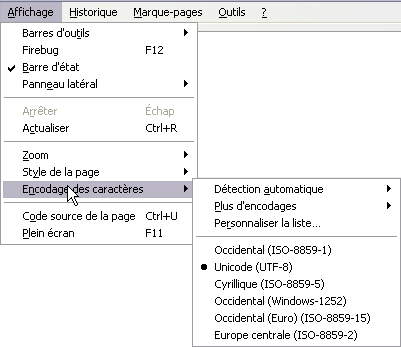 Sous Firefox, vérifiez si le navigateur a bien basculé l'interprétation des caractères spéciaux en UTF-8: