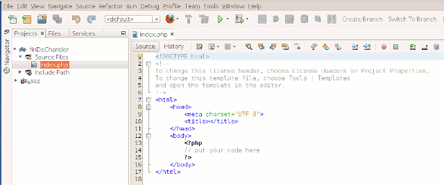 Pour notre nouveau projet, NetBeans a créé un fichier index.php. C'est le fichier minimal indispensable pour débuter.