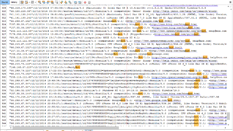La "signature" de ces robots d'indexation apparaît dans le dernier champ, celui où nous enregistrons le user-agent, c'est à dire le navigateur utilisé par le visiteur: